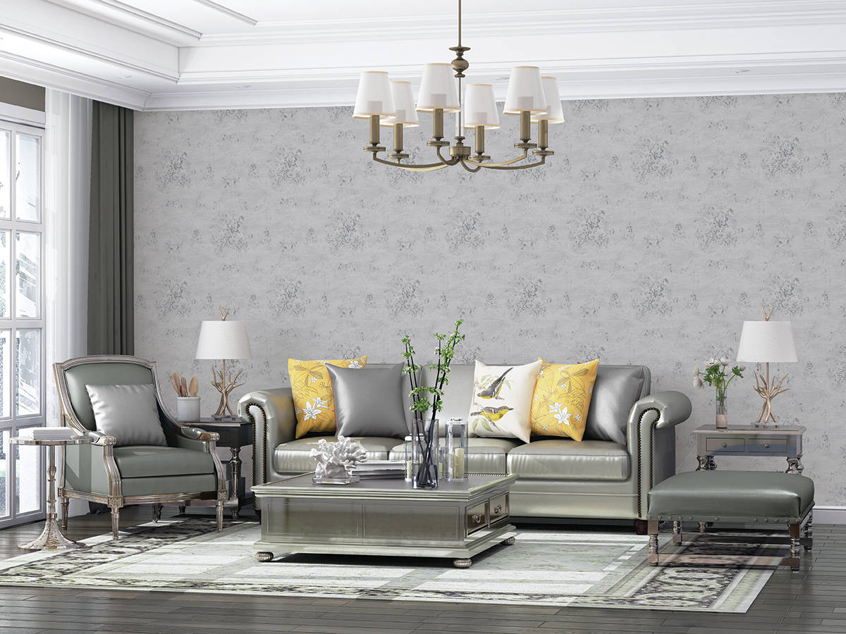 工艺介绍:高密度无纺底 + 隐形式提花,远看是纯粹的灰调素色,近看才会发现浅浮雕花卉纹,是 “低调党” 的质感王牌。