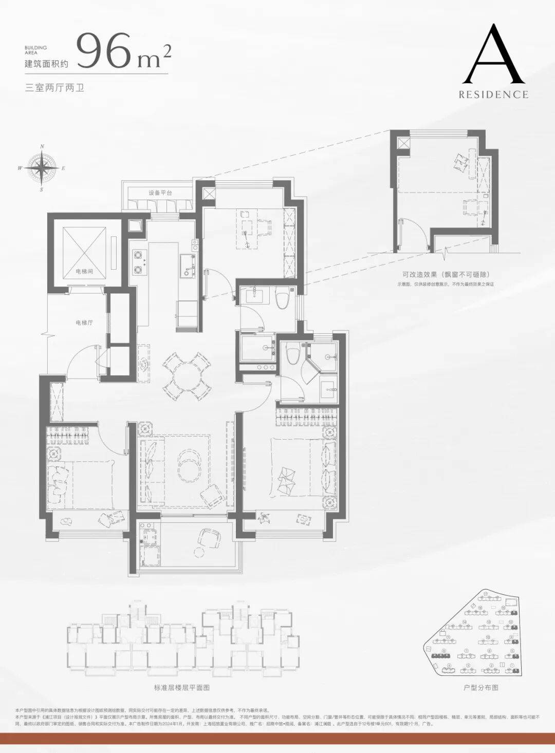 这个96㎡的户型,不仅实现了3房功能性一步到位,还有2卫配置!降低当下置业成本的同时,未来在二手市场也能抢占先机!