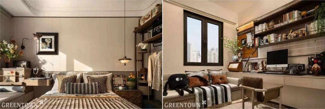 绿城西安秋月苑96、85户型展示样板间获得TITAN地产大奖室内设计类金奖。96户型展示样板间以宫崎骏作品为主题,米色与原木色为基础色,点缀复古绿与奢石,自然与古典艺术相融。区别于传统布局,一体化空间和去茶几化设计,更契合年轻家庭的生活方式。