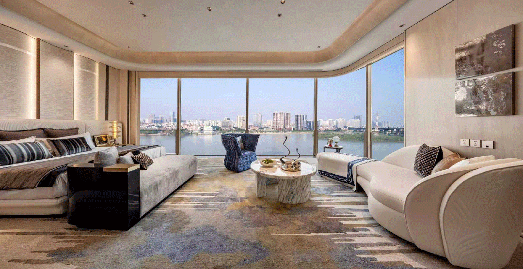 再配合约13米宽的跑道级阳台与80㎡的主卧套房,室内外的界限被打破,江风与阳光成为家中常客。