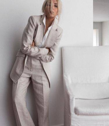 浅灰色一直是极简风的代表,简单的配色可以让穿搭看起来更有高级。而且浅灰色的套装可以营造“冷淡风”的感觉。看起来更加干练智慧。头发也可以是淡淡的颜色,有种标新立异的独特感。
