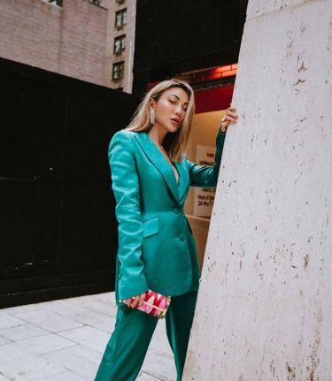 圣诞节快到了,红色和绿色都是主U8国际官方网站打的配色。不过小编个人感觉,绿色要比炙热的红色更不挑人。而且深绿色的西装很有节日气氛,轻熟但不张扬。西装的面料仔细看还透着光,看起来闪闪的,服装的设计挺有质感。在干练的西装设计中注入了新颖的绿色,会碰撞出不一样的新奇感觉。