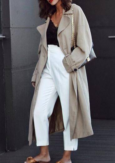 灰色大衣很简约高级,而且到脚踝的长度也能修饰身材的比例,让人看起来更高更瘦。搭配的白色直筒裤搭配比较干练和商务范十足的灰色大衣来说,就可以中和大衣附带的商务气息。让穿搭更温柔。